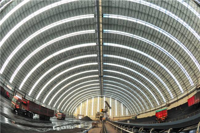 堆场料场封闭式主体结构为新型的钢大庆网架结构,维修结构为大庆钢结构大庆不锈钢板和纤维增强塑料灯具,其外形以大庆网架式和平板为主,连接柱大庆施工自由,设置喷雾自动喷水系统,从而可以实现棚内所有物料的覆盖,减少物料在运输过程中的损耗,起到防尘的作用,减少工厂关闭后的二氧化硫排放量,50mg/m3颗粒排放量小于10mg/m3,非常适合低能耗。低闭库自动感应反应对库存轮胎进行清洁,确保轮胎不受道路污染;封闭的储存区可从源头控制粉尘污染,控制无序排放。